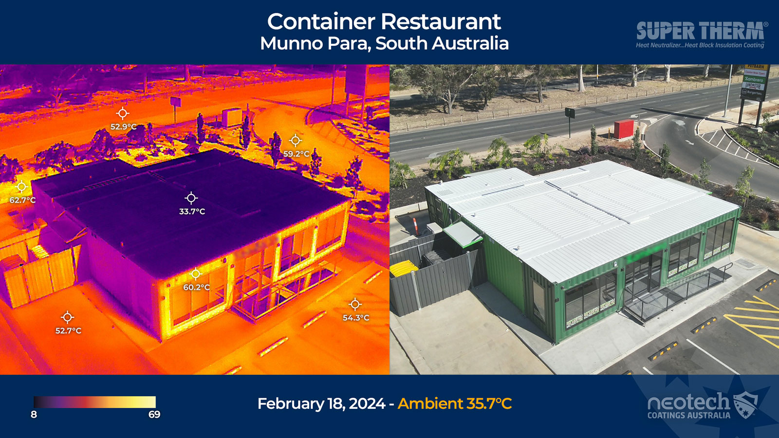 Previous unprotected container was 70+°C and after Super Therm was applied the temperature was ambient. Reduced kitchen temperatures by 12°C after Super Therm was applied.