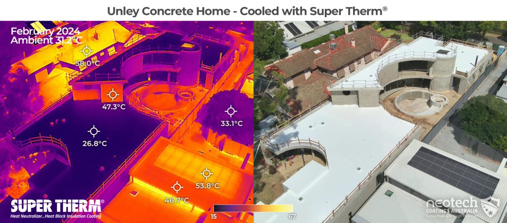 Discover the ultimate solution for cooling concrete with Super Therm®! Our revolutionary coating blocks an impressive 96.1% of total solar heat, keeping your thermal mass cool even on scorching days. In this video, witness the incredible difference as we apply Super Therm® to a concrete house in Unley, South Australia.
