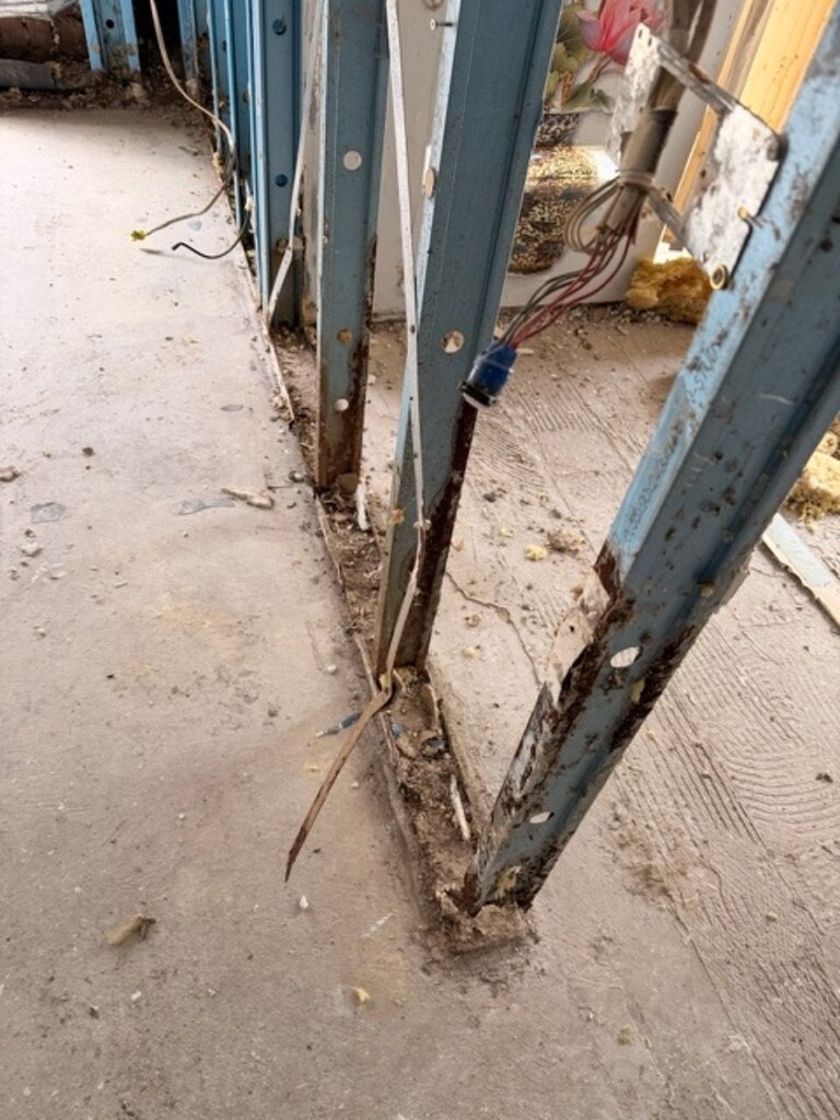Evidence is often visible long before steel is inspected. Moisture staining on internal linings, such as Gyprock®, is a strong indicator that condensation is occurring behind the wall. What cannot be seen is what is happening deeper in the cavity.