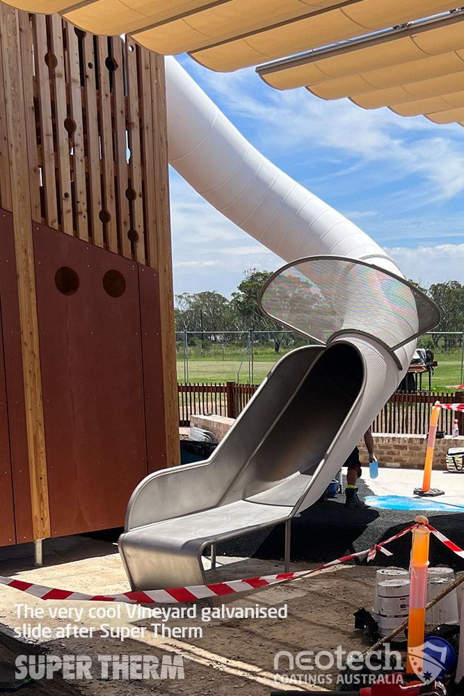 Vineyard Playground after Super Therm was applied keeping the slide cool. Grantham Farm, NSW